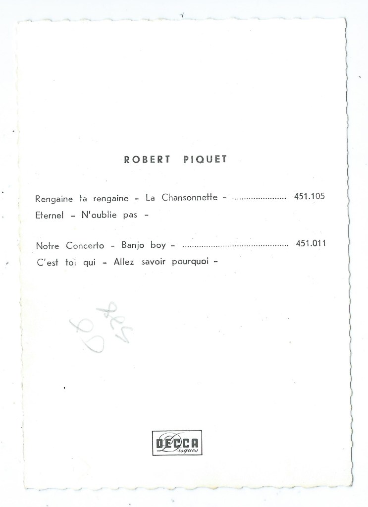 Actor, singer and dancer known for his light classical and operetta records during the 1950s and 60s. In 1970 he sang in the vocal quartet Les Poivre et Sel, alongside Dominique Tirmont, Francis Linel and Georges Blaness (See Walk 1). In 1962 he appeared in the films Les culottes rouges (with Bourvil) and C’est pas moi, c’est l’autre (directed by Jean Boyer).