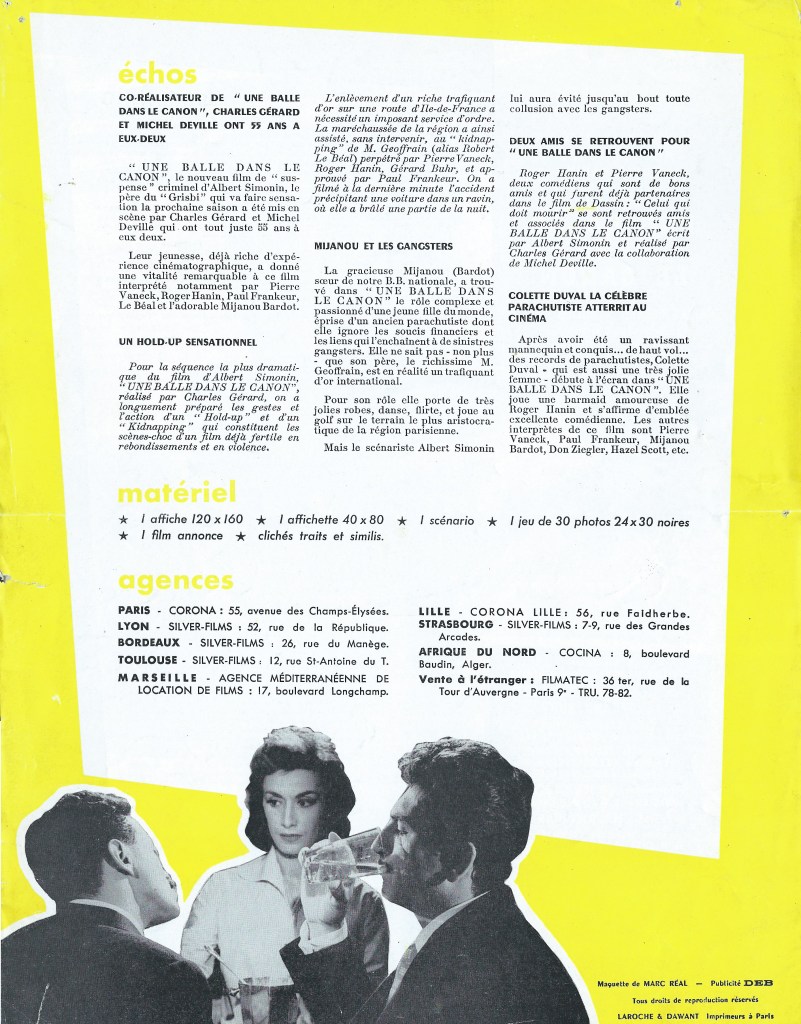 A bullet in the barrel is a French film directed by Michel Deville and Charles Gérard released in 1958 .