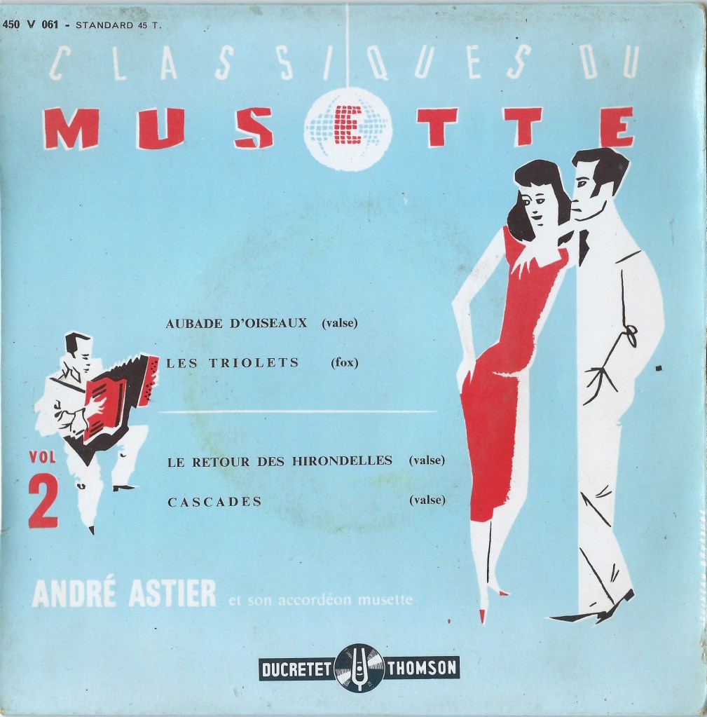 Accordionist Andre Astier wrote around a hundred compositions, from pieces for beginners to more complicated concert pieces. A frequent collaborator he often worked with his fellow accordionists, such as Yvette Horner, Lulu Charleu, Edouard Duleu, Maurice Denoux, , Maurice Larcange, Marcel Azzola, Jo Privat, Al Lerouge, and Joss Baselli. He studied music theory, harmony, and oboe at the Conservatoire de Musique de Montluçon. When WW2 broke out he joined the Dunlop tyre manufacturing company but left aged 19 to begin his musical career in Paris. As well as being busy on the concert circuit he also devotes himself to teaching and was active in the National Union of Accordionists of France. During the 1950s and 60s he released a number of EPs on the Ducretet Thomson label, mostly in the musette style.