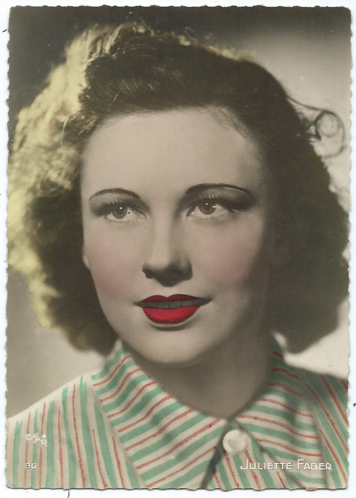 Born in Grevenmacher, on the banks of the Moselle river, to a Catalan father and a Luxembourgish mother, Juliette Faber was catapulted to fame at a young age. After moving to Paris with her parents from Perpignon, she was eligible to join the Conservatory, and joined the amateur troupe formed by Jean Wall and Claude Dauphin. Wall saw the potential in the 15 year old Faber and she was thrust into the limelight, making her debut in Les Jours heureux at the Théâtre Michel (Paris) in 1938. The production directed by Claude-André Puget, with its cast of talented young actors, was a tremendous success. Audience members included the President of France, Albert Lebrun, before it transferred to the Théâtre de Paris in 1939. The talents of Juliette Faber shone so bright that she was to make a sensational debut in the cinema, playing the main role in La vierge folle alongside Victor Francen (1938). She reprised her role of Pernette in the film version of Les Jours heureux in 1941. Her career in the cinema and on TV would flourish for more than 50 years. Although her time on the stage didn’t last as long there were some significant highlights, including opening the show for a Tribute to Jean Cocteau in 1947.
