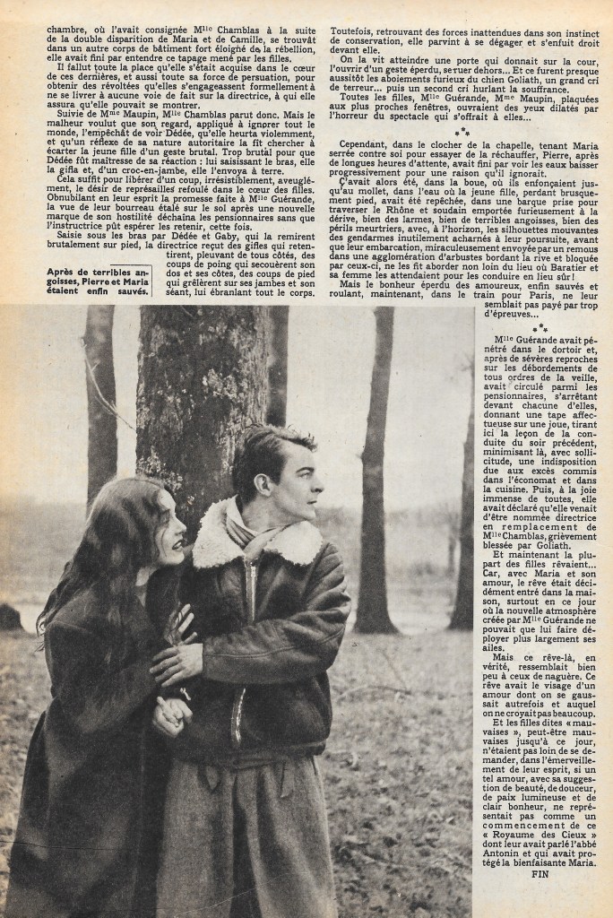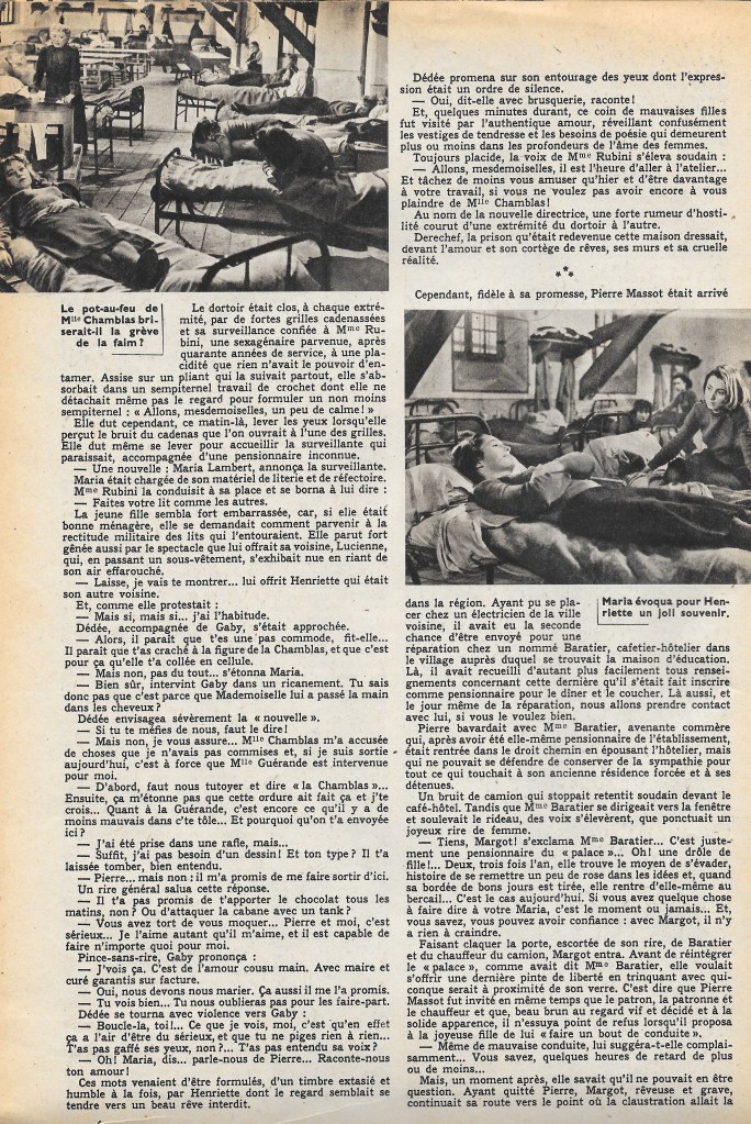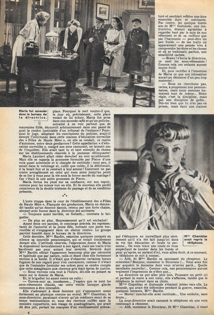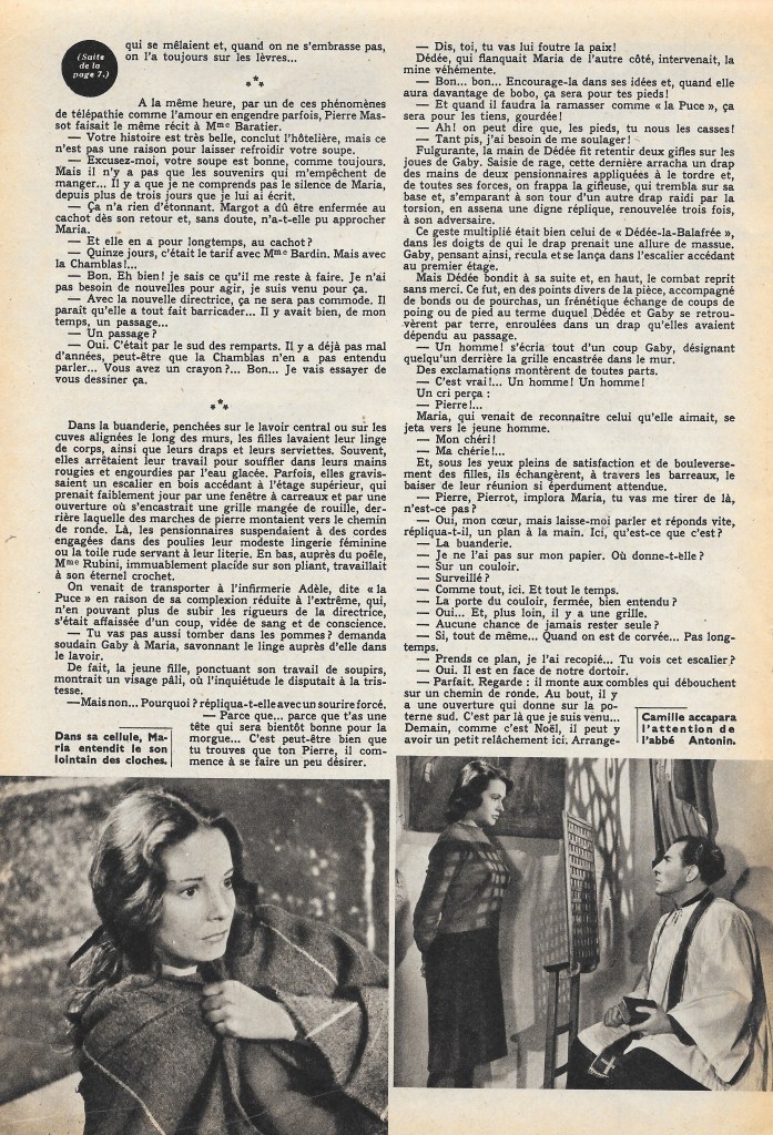 Of the twenty-eight bad angels, nine have significant roles. Two others have previous screen experience. These are Jeannette Batti, who needs no introduction to our readers, and Jeanne Moreau, who has just made her debut in Jean Stelli’s latest film.